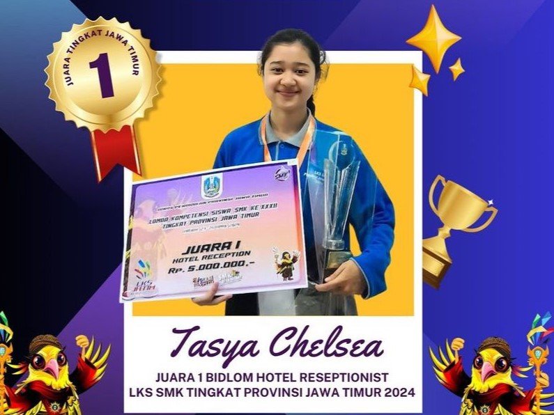 MALANG POST – Dua siswi SMKN 3 Malang. Tasya Chelsea Aprilia, kelas XI jurusan Perhotelan. Dan Nurullah Laila, kelas XI jurusan Desain Produksi Busana. Menjadi Juara Pertama di ajang Lomba Kompetensi Siswa (LKS) 2024 ke XXXII, Provinsi Jawa Timur.