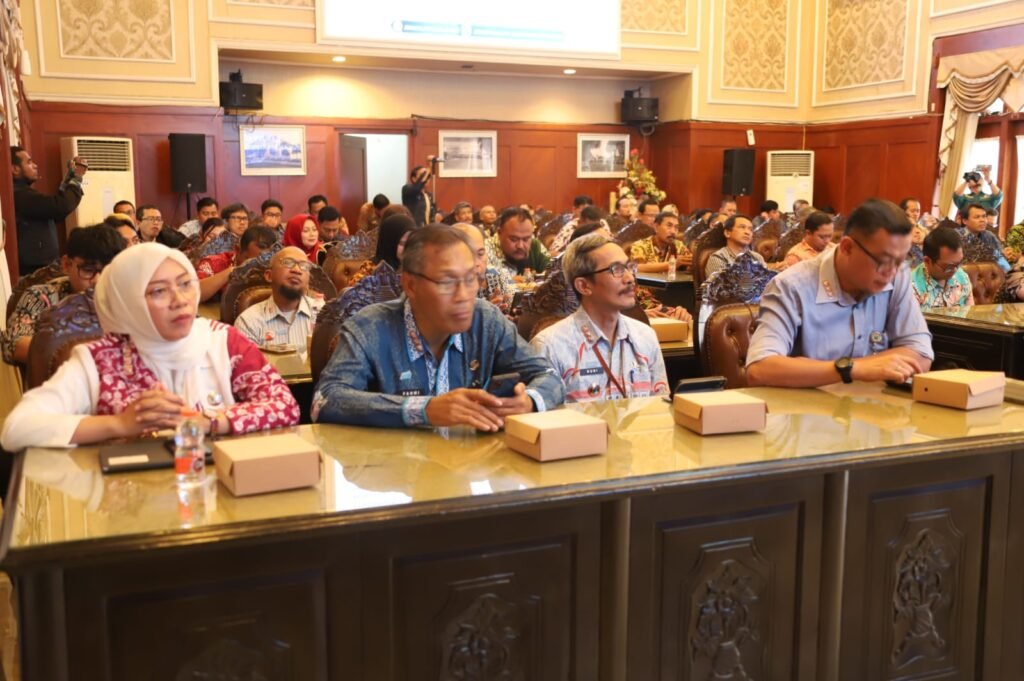 SOSIALISASI: Lima camat dan 57 lurah, dikumpulkan Pemkot Malang terkait sosialisasi Posbankum, di Balai Kota Malang, Jumat (19/09/2025). (Foto: Iwan Irawan/Malang Post)