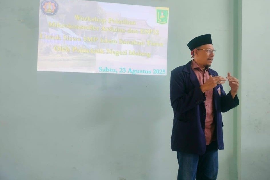 MALANG POST – Sebagai bagian dari kegiatan Pengabdian kepada Masyarakat (PkM), dosen dari bidang Teknik Mesin dan Teknik Elektro Polinema (Politeknik Negeri Malang) mengadakan Workshop Pelatihan Mikrokontroler Arduino dan ESP32 di SMP Islam Sawahan Turen.