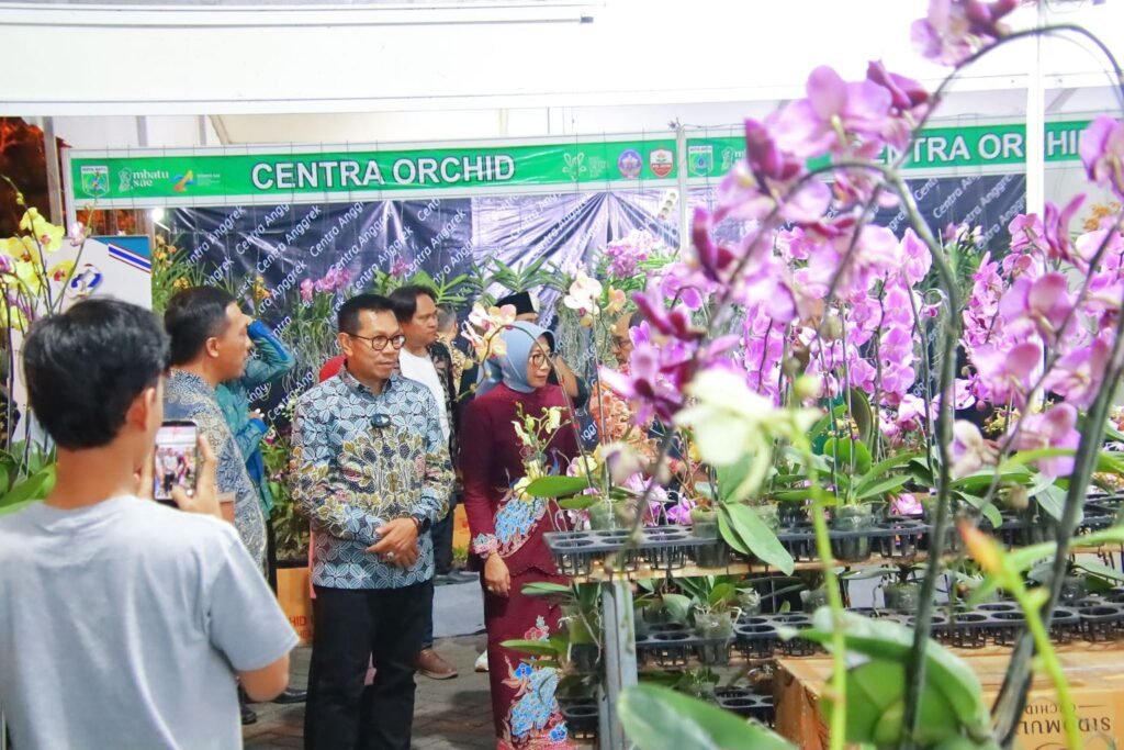 LIHAT ANGGREK: Wali Kota Batu, Nurochman saat melihat keindahan Anggrek yang dipamerkan di event Batu Shining Orchid Week 2025. (Foto: Ananto Wibowo/Malang Post)