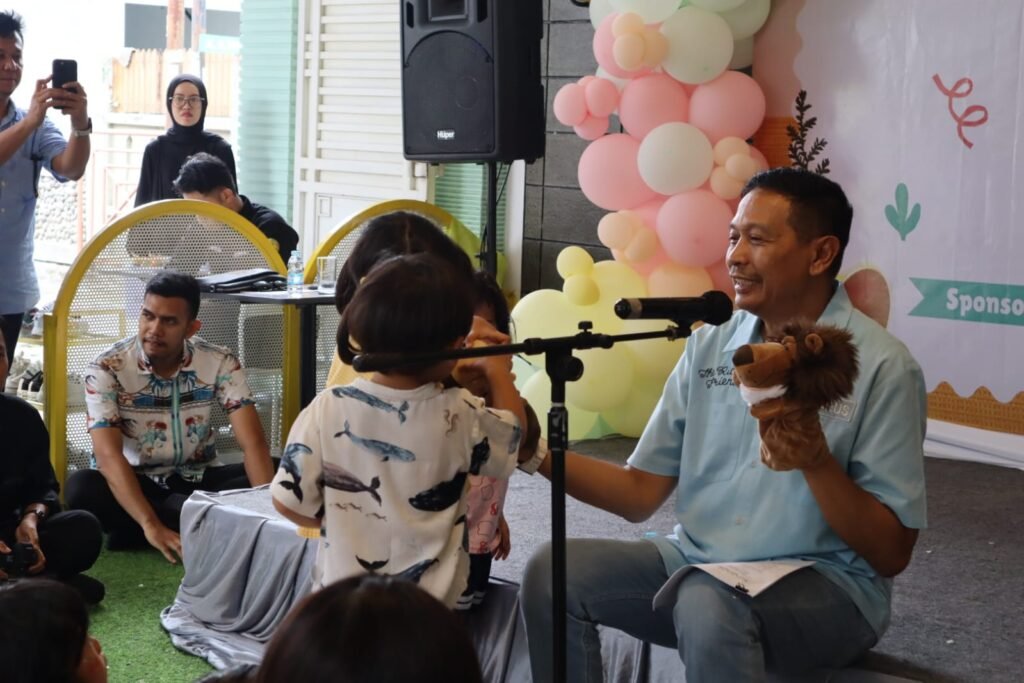 Berbeda dari acara seremonial pada umumnya, Wali Kota Wahyu tampil santai di hadapan para anak dan orang tua dengan membawakan cerita anak berjudul “Mimi dan Roro di Hutan Riang.” Cerita ini mengisahkan Mimi, seekor monyet yang cerdas dan periang, serta Roro, seekor singa pemberani namun mudah marah.