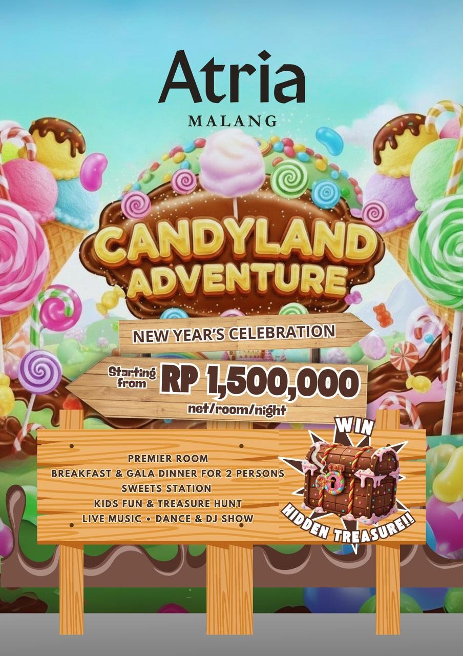 Dengan konsep yang ceria, penuh warna, dan dipenuhi berbagai aktivitas menarik untuk semua usia, Candyland Adventure di Atria Hotel Malang siap menjadi destinasi paling manis untuk menyambut tahun 2026, Pesan sekarang dan nantikan petualangan yang berkesan di Candyland Adventure dari Atria Hotel Malang. (*/Sarah)