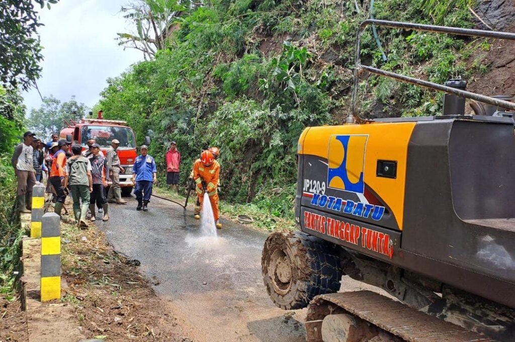 Upaya pembersihan baru dilakukan, Senin pagi sekitar pukul 07.00 WIB. Tim gabungan dari BPBD, Damkarmat Kota Batu, Agen Informasi Bencana Jatim, serta warga setempat bahu-membahu menyingkirkan material longsor.