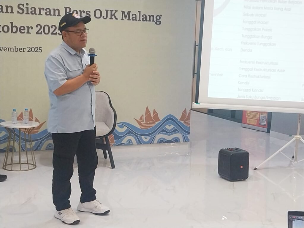 Farid Faletehan, Kepala OJK Malang, saat paparan kinerja OJK Malang. (Foto: Eka Nurcahyo/Malang Post)