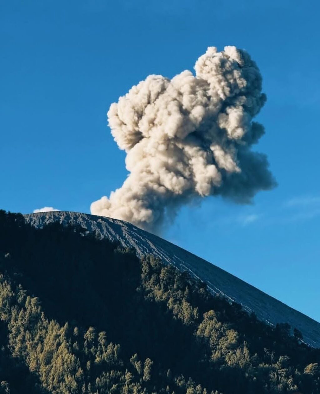 MALANG POST – Gunung Semeru, gunung tertinggi di Pulau Jawa, kembali memuntahkan kolom abu pada Jumat (14/11/2025) pagi sekitar pukul 05.55 WIB. Menurut keterangan Petugas Pos Pengamatan Gunung Semeru, Sigit Rian Alfian, kolom letusan teramati mencapai ketinggian sekitar 800 meter di atas puncak gunung, setara 4.476 meter di atas permukaan laut (mdpl). Kolom abu teramati berwarna putih hingga kelabu dengan intensitas tebal yang mengarah ke timur laut.