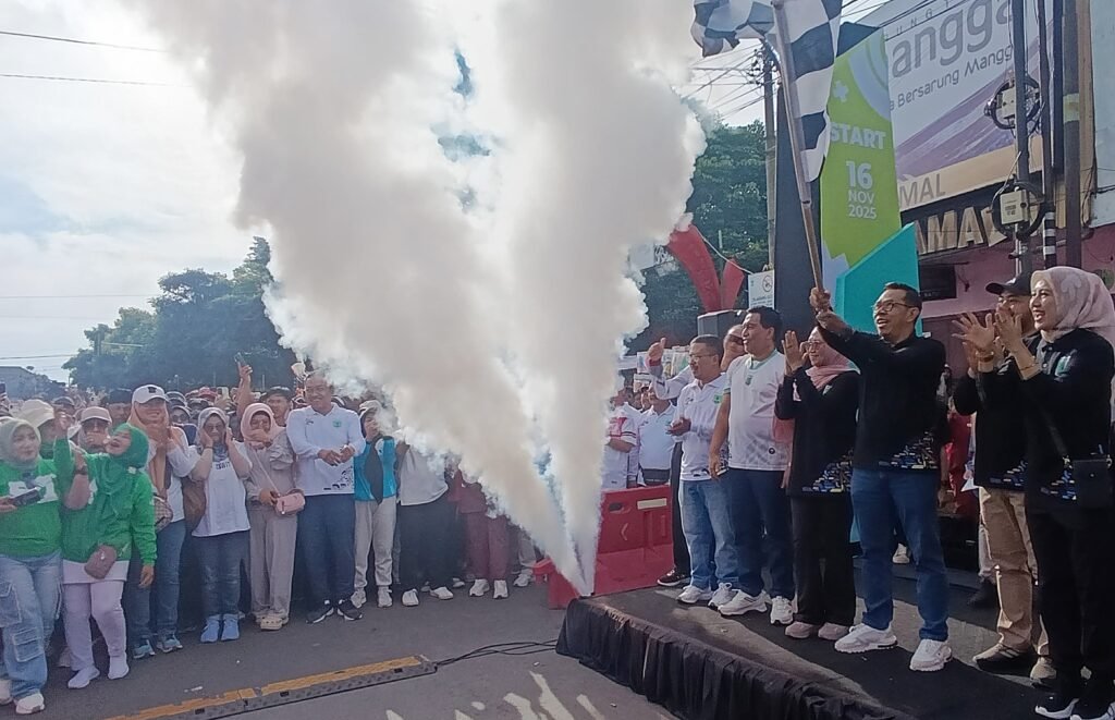 MALANG POST – Ribuan warga Kota Batu tumpah ruah mengikuti kegiatan Mlaku Bareng Sedoyo Sehat, Minggu (16/11/2025). Sejak pagi, Alun-alun Kota Batu dipadati peserta yang antusias menunggu aba-aba pemberangkatan dari Wali Kota Batu, Nurochman.