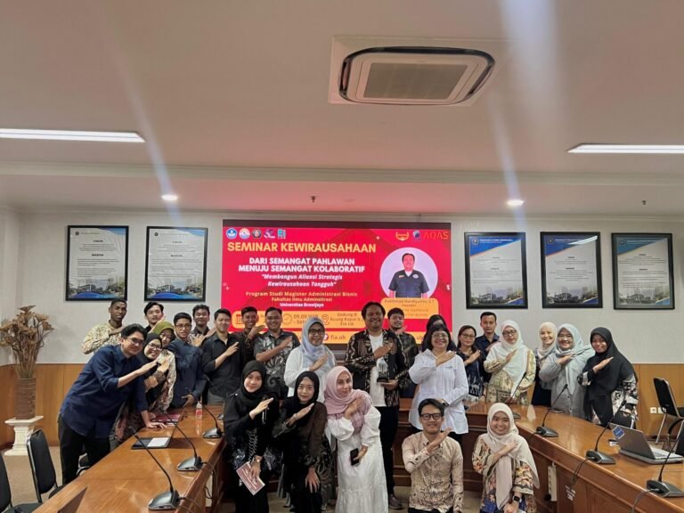 MALANG POST – Mahasiswa Program Magister Administrasi Bisnis Fakultas Ilmu Administrasi Bisnis (MBA FIA) menggelar seminar kewirausahaan bertajuk “Dari Semangat Pahlawan Menuju Semangat Kolaboratif: Membangun Aliansi Strategis Kewirausahaan Tangguh untuk Menumbuhkan Jiwa Wirausaha yang Tangguh dan Kolaboratif.”