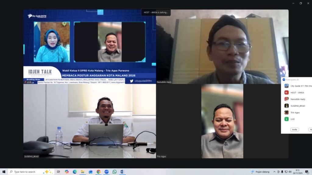 Kepala Bidang Anggaran dan Perbendaharaan BKAD Kota Malang, Sugeng Suroto, menyampaikan hal tersebut, saat menjadi narasumber talk show di program Idjen Talk. Yang disiarkan langsung Radio City Guide 911 FM, Rabu (26/11/2025).