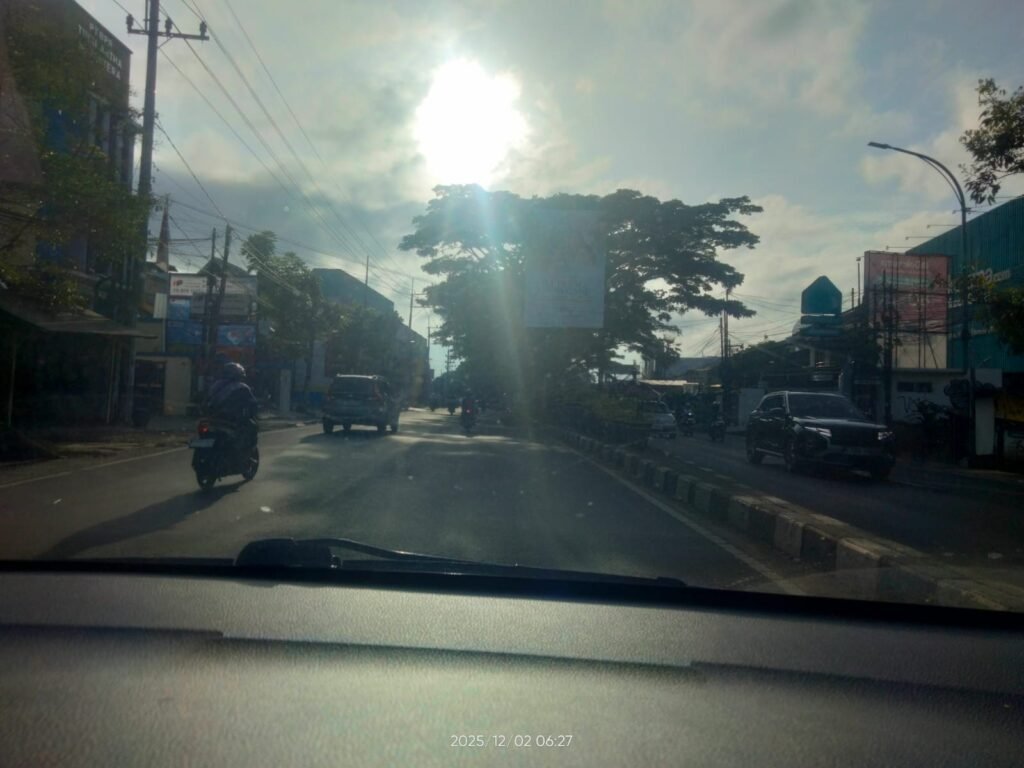 CERAH: Kondisi Jl Borobudur Kota Malang, Selasa (2/12/2025) pagi hari nampak cerah. Namun waspada di atas jam 14.00 bisa terjadi hujan. (Foto: Yanuar/Malang Post)