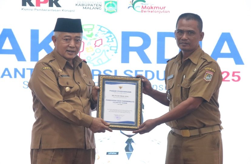 Pada momen Peringatan Hakordia 2025 ini, juga diserahkan piagam penghargaan oleh Bupati Malang kepada sepuluh Pemerintah Desa atas Prestasi Penyelenggaraan Pemerintahan Desa, dalam upaya Pencegahan Korupsi, berdasarkan Sistem Monitoring Desa Anti Korupsi (SIDASI) tahun 2025.
