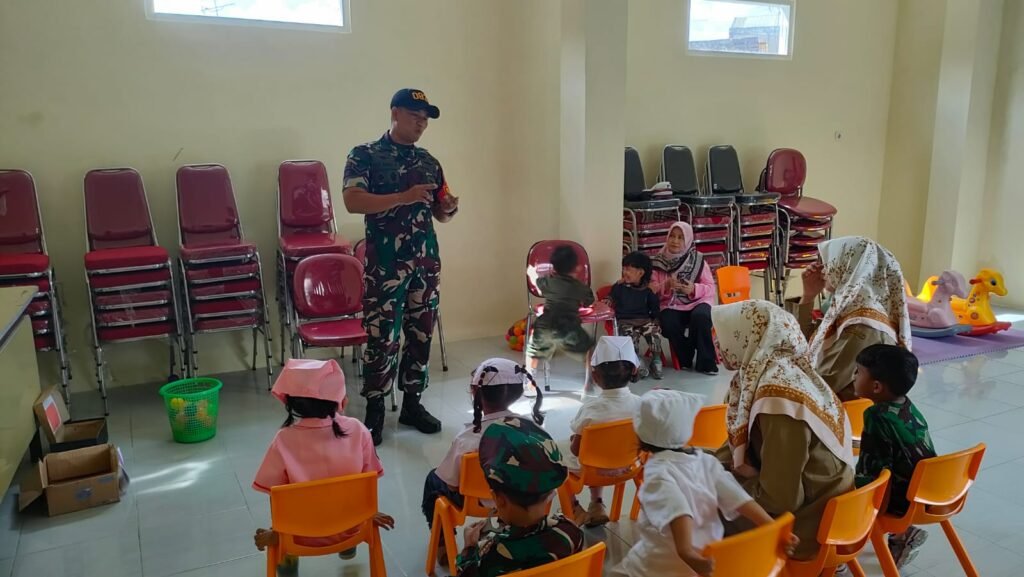 Malang Post – Serda Putu Babinsa Kelurahan Bareng, Koramil 0833/01 Klojen, memberikan kelas inspirasi bagi anak–anak PAUD Tunas Melati, Kelurahan Bareng, Kecamatan Klojen, Kota Malang,Rabu ( 12/12/25). Kegiatan ini menjadi bagian dari upaya TNI dalam mendukung pendidikan karakter sejak usia dini serta memperkuat kedekatan antara Babinsa dengan masyarakat.
