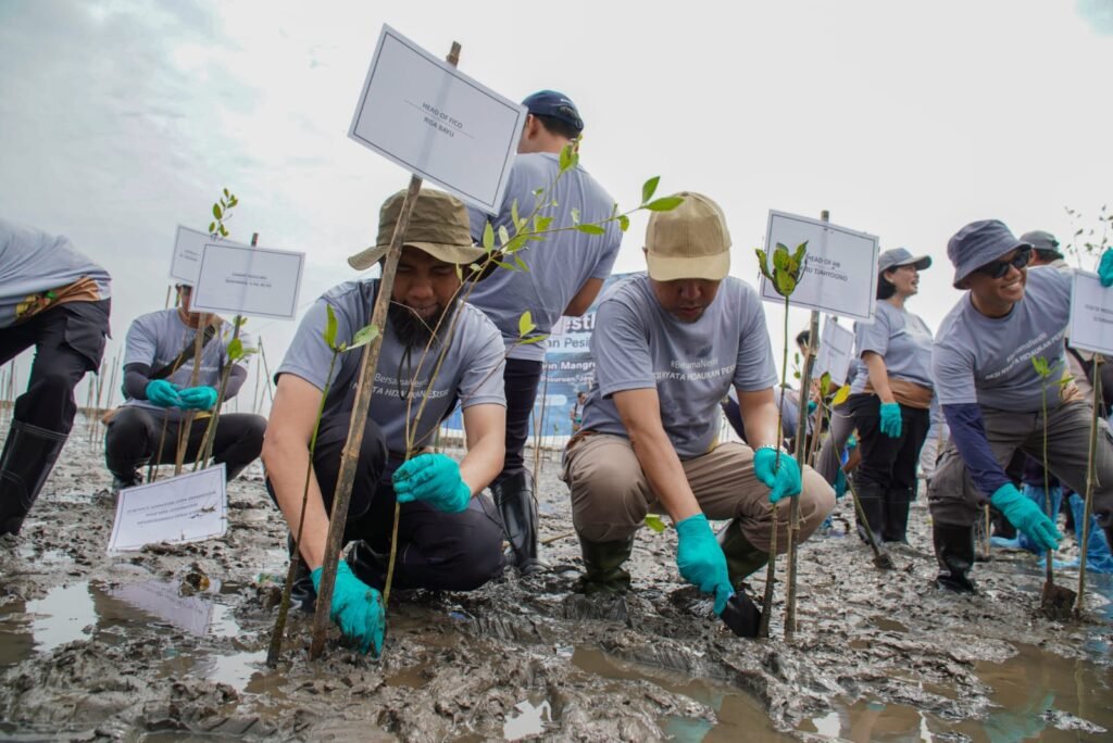Aksi nyata PT Nestlé Indonesia Pabrik Kejayan hijaukan pesisir lewat penanaman 1.000 bakau di Desa Watuprapat, Pasuruan, Jawa Timur. (Foto: Istimewa)