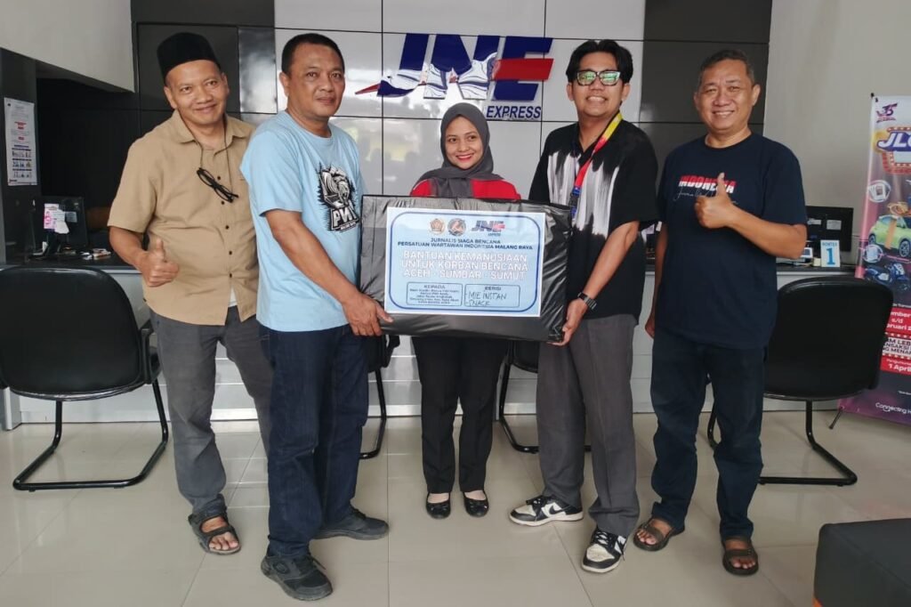 Bantuan tersebut diterima langsung oleh PIC 3C JNE Cabang Malang, Danang Irma Julianta, yang nantinya akan dikirim melalui PWI Provinsi Aceh.