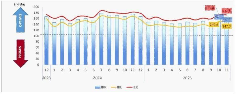 Hal ini tecermin dari Indeks Keyakinan Konsumen (IKK) Desember 2025 tercatat sebesar 152,8.