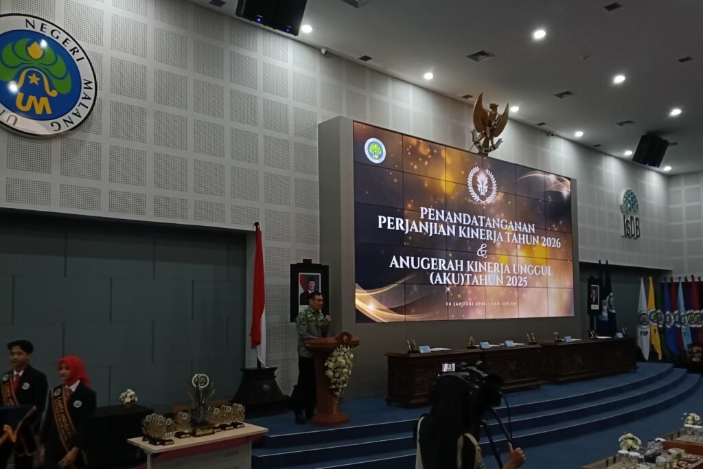 MALANG POST – Demi memperkuat setiap lini serta sebagai apresiasi atas kinerja selama satu tahun, Universitas Negeri Malang (UM) kembali menggelar Anugerah Kinerja Unggul (AKU) 2025 serta Perjanjian Kinerja 2026, pada Rabu (14/1/2026).