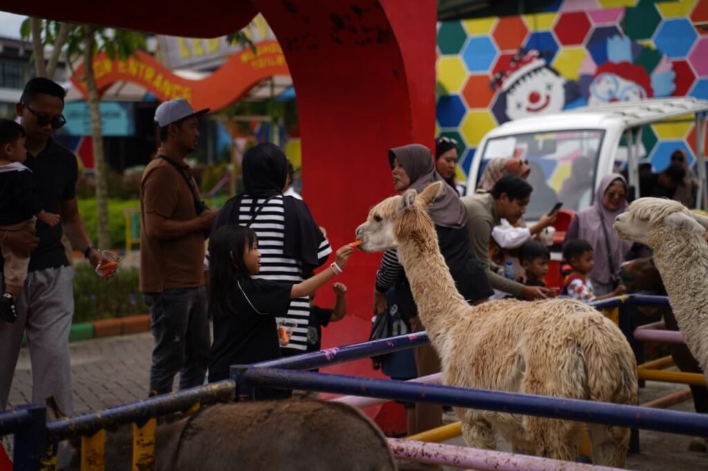 Pengalaman edukatif juga diperkuat melalui aktivitas feeding animal. Di area ini, pengunjung berkesempatan memberi makan satwa seperti alpaca dan keledai, dengan pengawasan langsung zookeeper agar tetap aman dan informatif.