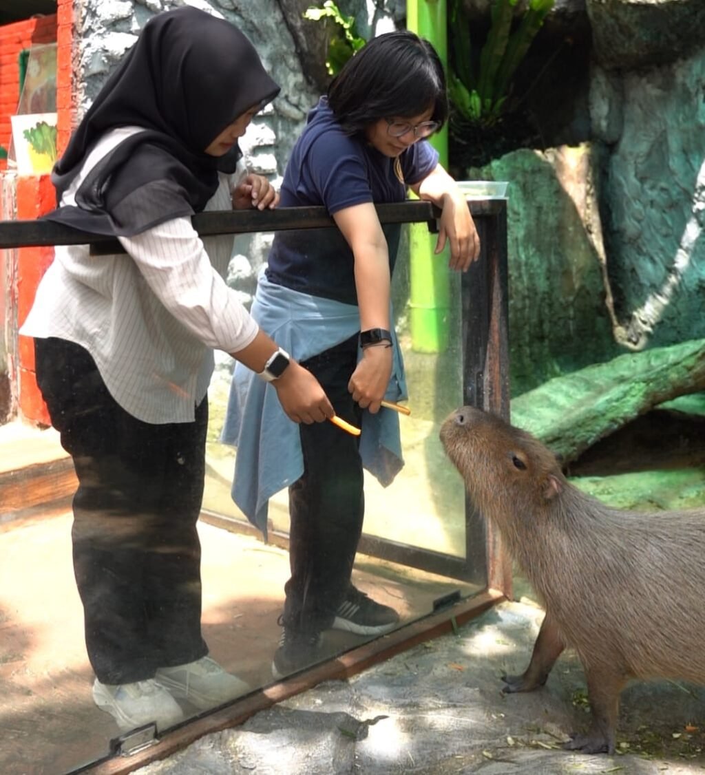 Lebih dari sekadar berfoto atau memberi makan, pengunjung juga diajak mengenal lebih dekat kehidupan capybara. Mulai dari karakter alami, habitat, pola makan, hingga cara perawatan satwa yang benar dan bertanggung jawab.