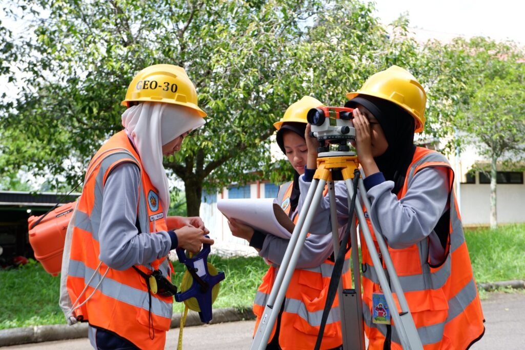 Bagi para siswa, tantangan praktik di Kampus 2 ITN melampaui apa yang biasa mereka jalani di sekolah. Jika dulu berurusan dengan lahan sempit, kini mereka harus menguasai area seluas 10 hektar. Amelia Susanti, yang memegang alat Total Station, mengakui tingkat ketelitian yang tinggi diperlukan.