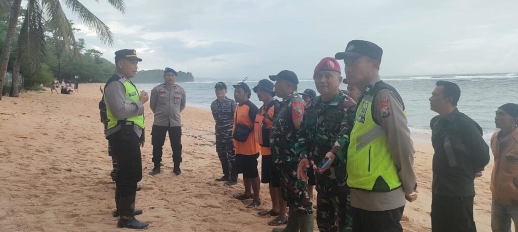 Untuk memasifkan pencarian, apel gabungan digelar di area Pantai Balekambang. Dipimpin langsung Kapolsek Bantur, AKP Totok Suprapto.