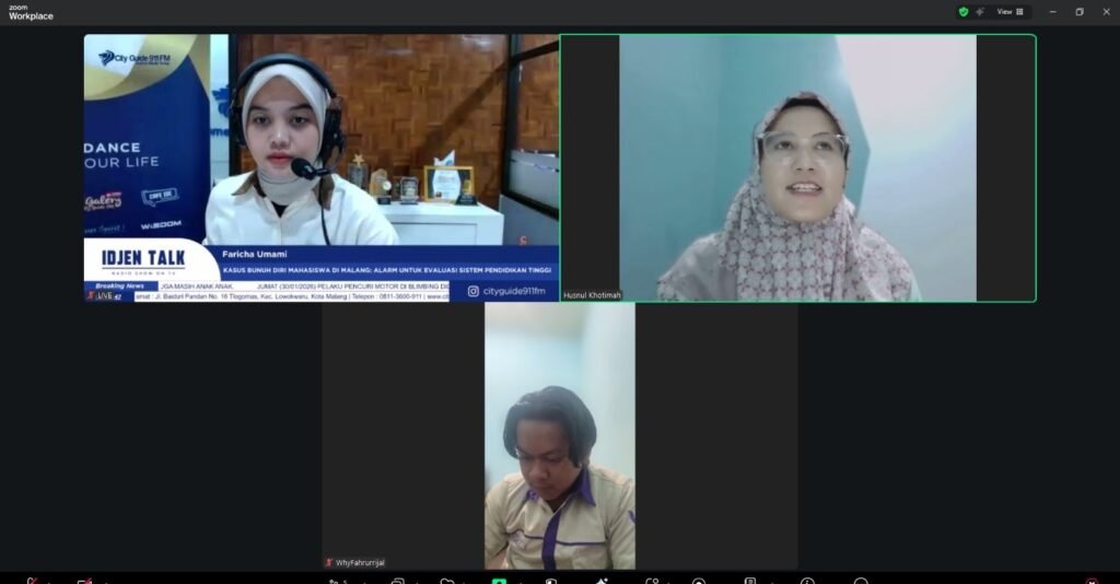 Kata Wakil Rektor Universitas Islam Malang, Dr. Erna Sulistyowati, saat menjadi narasumber talk show di program Idjen Talk, mengatakan, peran kampus sangat penting untuk mencegah kasus bunuh diri mahasiswa.