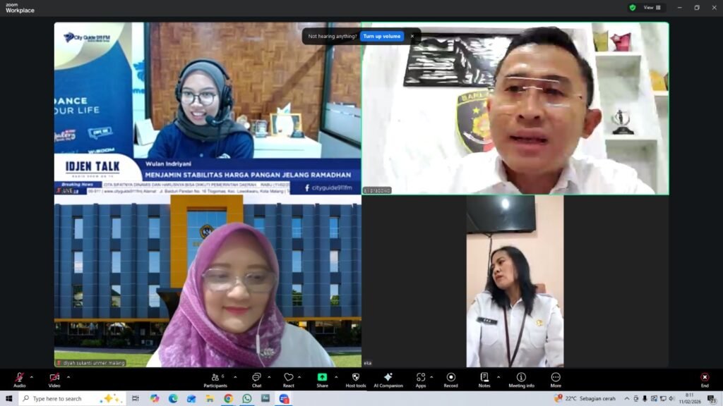 Kabid Perdagangan Diskopindag Kota Malang, Luh Putu Eka Wilantari, saat menjadi narasumber talk show di program Idjen Talk, yang disiarkan langsung Radio City Guide 911 FM, Rabu (11/2/2026), menyebut, sejumlah komoditas yang mengalami kenaikan meliputi cabai rawit, telur hingga daging ayam ras.