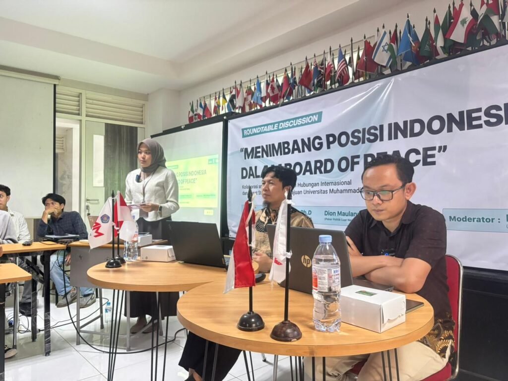 Ia menyampaikannya pada Roundtable Discussion bertema Menimbang Posisi Indonesia dalam Board of Peace (BOP) yang digelar pada Senin 10 Februari 2026, di Laboratorium Hubungan Internasional UMM.