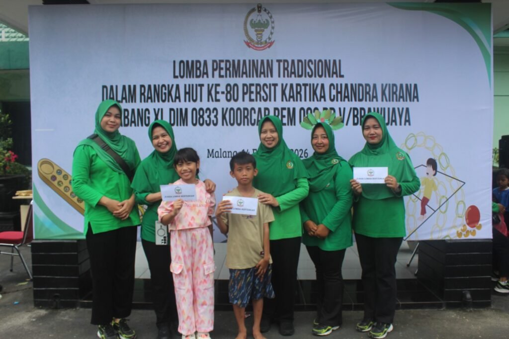 Malang Post – Dalam rangka memperingati Hari Ulang Tahun (HUT) ke-80 Persit Kartika Chandra Kirana Tahun 2026, Persit Kartika Chandra Kirana Kodim 0833 Koorcab Korem 083 PD V/Brawijaya menyelenggarakan kegiatan Olahraga Bersama dan Lomba Permainan Tradisional di Makodim 0833 Jl. Kahuripan No.6, Kelurahan Kauman, Kecamatan Klojen, Kota Malang, Sabtu (14/02/2026).