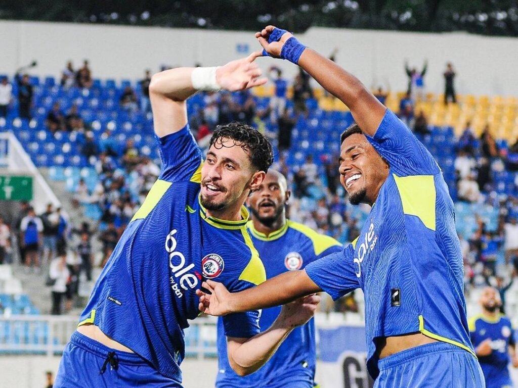 DUET: Gustavo Franca (pencetak gol) dan Gabriel Silva (pemberi asis), saat merayakan gol kedua Arema dari 3-0 kemenangan atas Semen Padang. (Foto: Arema Official)