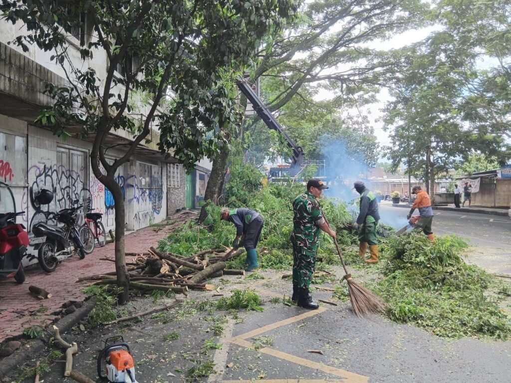 Malang Post – Dalam upaya menjaga keamanan dan keselamatan masyarakat, Babinsa Koramil 0833-01/Klojen, Sertu Gunawan, melaksanakan monitoring kegiatan pemotongan dan perapihan pohon trembesi yang rawan tumbang di Jalan Patimura, Kelurahan Klojen, Kota Malang, Rabu (25/2/2026).