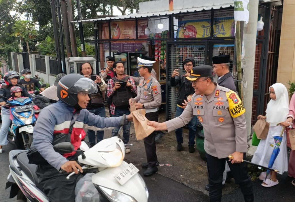 MALANG POST – Semangat berbagi di bulan Ramadan terus digelorakan jajaran kepolisian di Kota Batu. Dipimpin langsung Kapolres Batu, AKBP Aris Purwanto, sedikitnya 200 paket takjil gratis dibagikan kepada masyarakat dan pengguna jalan, Jumat (27/2/2026).