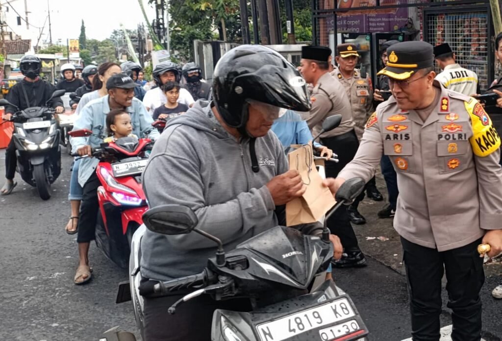 MALANG POST – Semangat berbagi di bulan Ramadan terus digelorakan jajaran kepolisian di Kota Batu. Dipimpin langsung Kapolres Batu, AKBP Aris Purwanto, sedikitnya 200 paket takjil gratis dibagikan kepada masyarakat dan pengguna jalan, Jumat (27/2/2026).