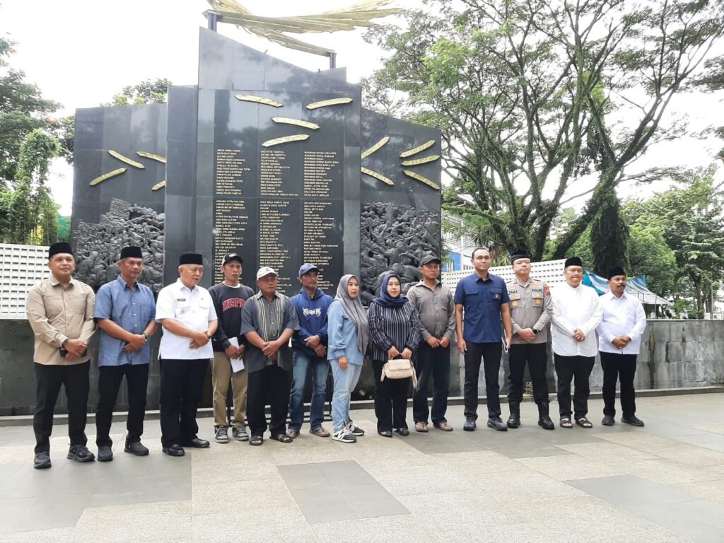 BAKAL DIRESMIKAN: Monumen Tragedi Kanjuruhan yang menjadi background foto bersama tersebut, bakal segera diresmikan, sebagai penanda tragedi yang menewaskan 135 Aremania. (Foto: Prokopim Sekda Kab. Malang)