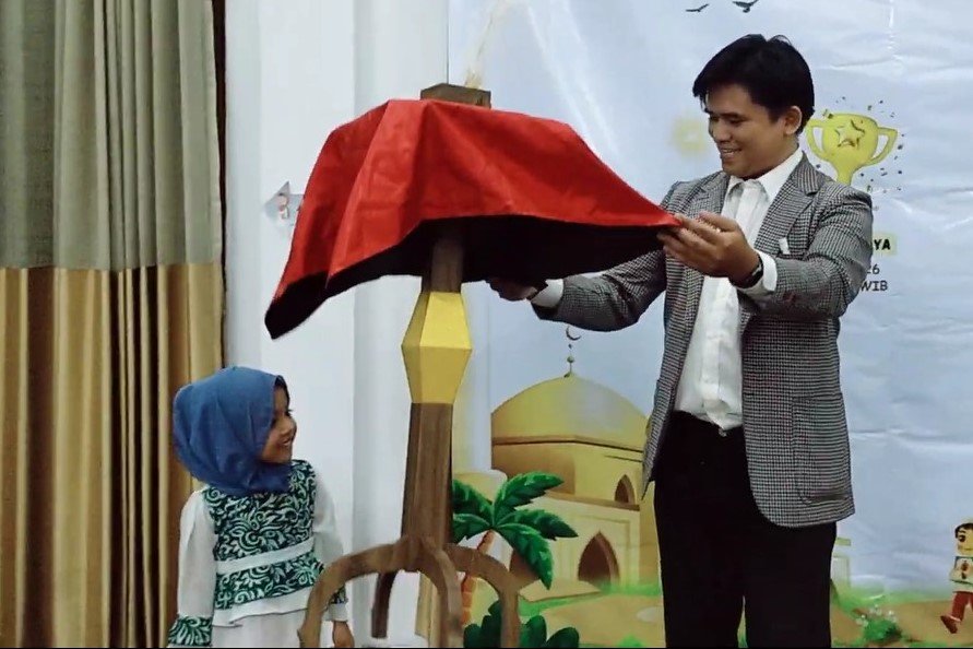 Kak El, membuka show dengan mengeluarkan api dari buku. Mata hadirin dibuat berbinar dibalut riuh tepuk tangan. Pesulap ini dengan lihai menampilkan ragam atraksi. Dari menghadirkan bunga, mengubah warna air, melipat gandakan dadu, bahkan menerbangkan meja. Kak El juga kreatif menyelipkan pesan-pesan hikmah dibalik sulapnya.