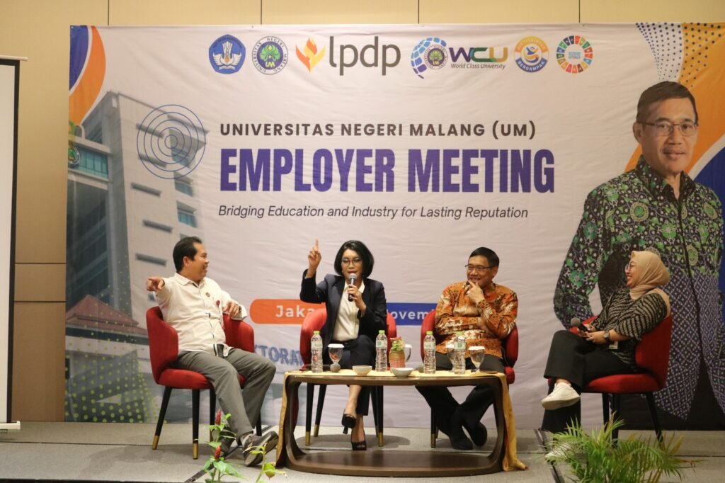 MALANG POST – Universitas Negeri Malang (UM) terus memperkuat jembatan antara dunia pendidikan dan industri melalui rangkaian kegiatan yang memperluas peluang kerja, riset dan inovasi, selaras dengan tujuan pendidikan yang berkualitas (SDG’s 4) yang menekankan pendidikan inklusif dan berkualitas bagi semua.