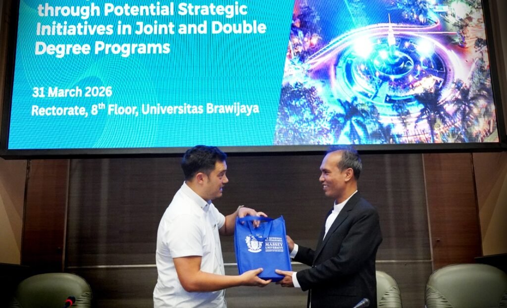 MALANG POST – Universitas Brawijaya (UB) melakukan diskusi penguatan kemitraan dengan Massey University untuk memperkuat kerja sama akademik bertajuk “Enhancing Academic Partnerships between Universitas Brawijaya and Massey University, New Zealand, through Potential Strategic Initiatives in Joint and Double Degree Programs”.