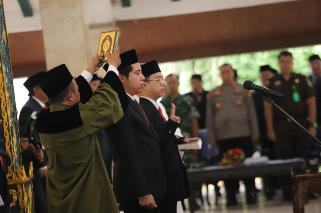 ”Terima kasih atas perhatiannya. Selamat bertugas kepada pejabat yang hari ini dikukuhkan, dilantik dan diambil sumpahnya.”