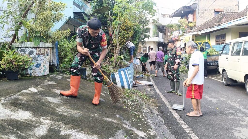 Malang Post – Dalam rangka meningkatkan kebersihan lingkungan serta mempererat tali silaturahmi, Babinsa Koramil 0833-01/Klojen, Serda Suryadi turut serta membantu warga melaksanakan kegiatan kerja bakti di Kelurahan Samaan, Kecamatan Klojen, Kota Malang, Sabtu (18/4/2026).