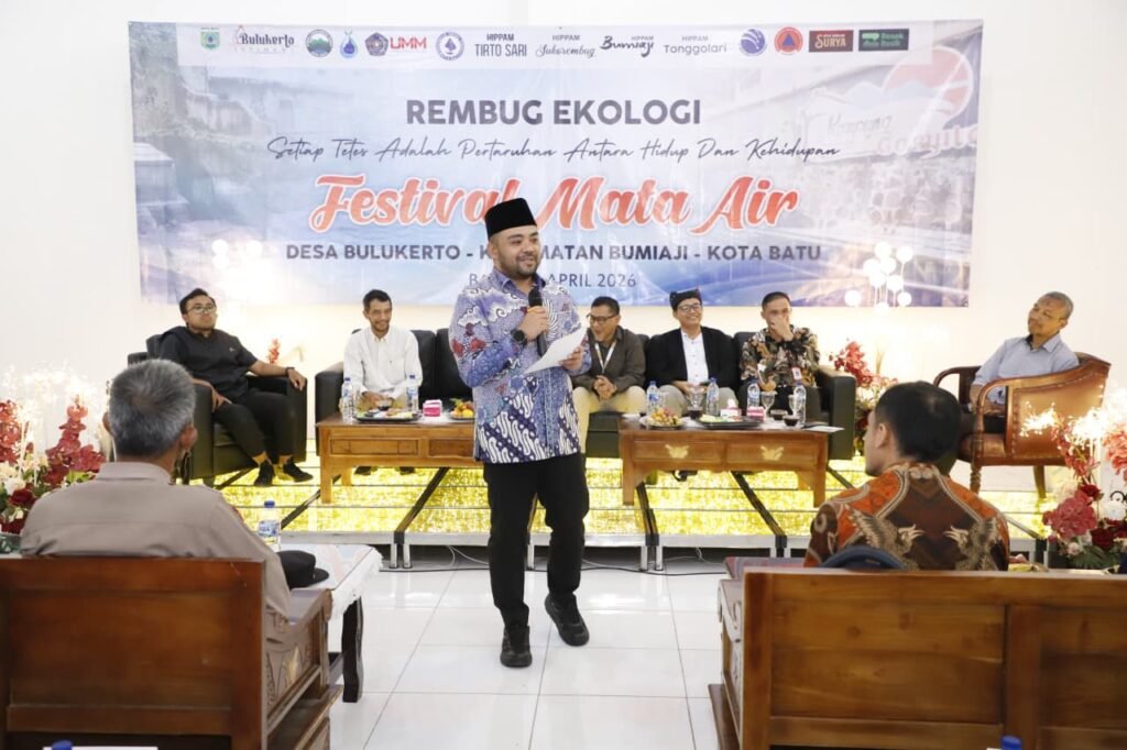 MALANG POST – Pemerintah Kota Batu bersama elemen masyarakat memperkuat komitmen pelestarian sumber daya alam melalui gelaran Rembuk Ekologi dalam rangkaian Festival Mata Air ke-3 yang berpusat di Balai Dusun Cangar, Desa Bulukerto, Kecamatan Bumiaji, Kamis (23/4/2026). Forum strategis ini bertujuan merumuskan sinergi antara kebijakan pemerintah, kajian akademis, dan kearifan lokal guna menjamin keberlanjutan sumber air di wilayah hulu yang menjadi penopang hidup masyarakat Malang Raya.