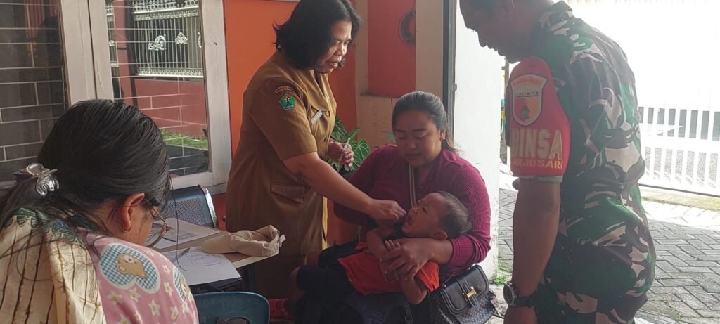 Kegiatan ini merupakan bagian dari program pelayanan kesehatan yang rutin dilaksanakan guna memastikan tumbuh kembang balita tetap optimal serta terhindar dari berbagai penyakit menular. Kehadiran Babinsa dalam kegiatan tersebut bertujuan untuk memberikan rasa aman dan mendukung kelancaran jalannya pelayanan kepada masyarakat.