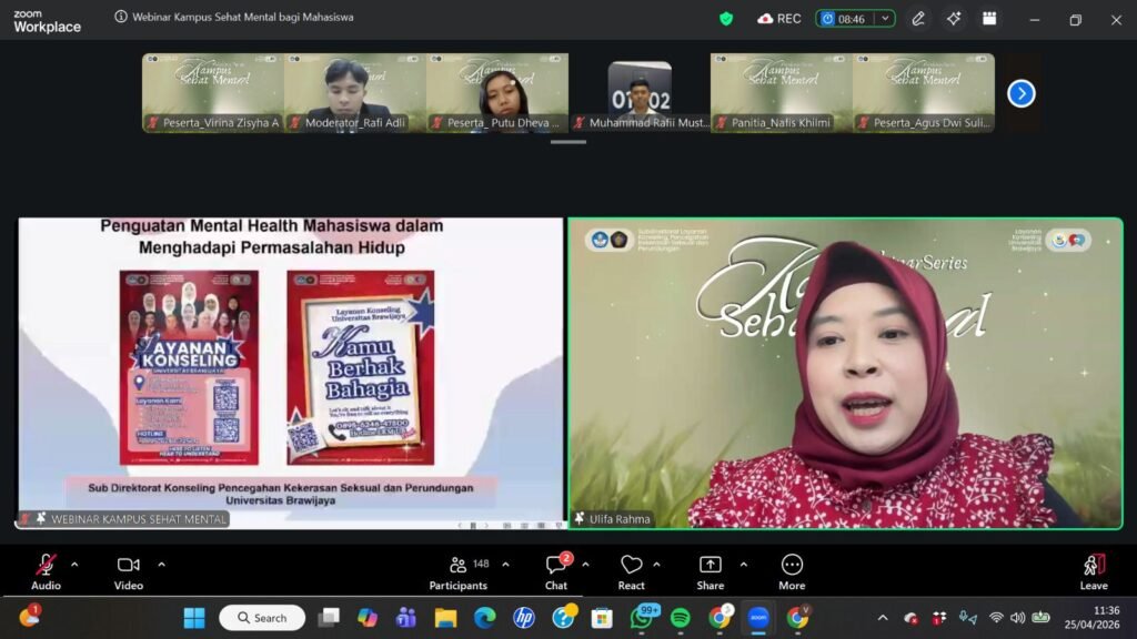 Demikian disampaikan Kaprodi Psikiatri Fakultas Kedokteran Universitas Brawijaya (FK UB) dr. Frilya Rachma Putri, Sp.KJ., dalam acara Webinar Series: Kampus Sehat Mental, Sabtu (25/4/2026).
