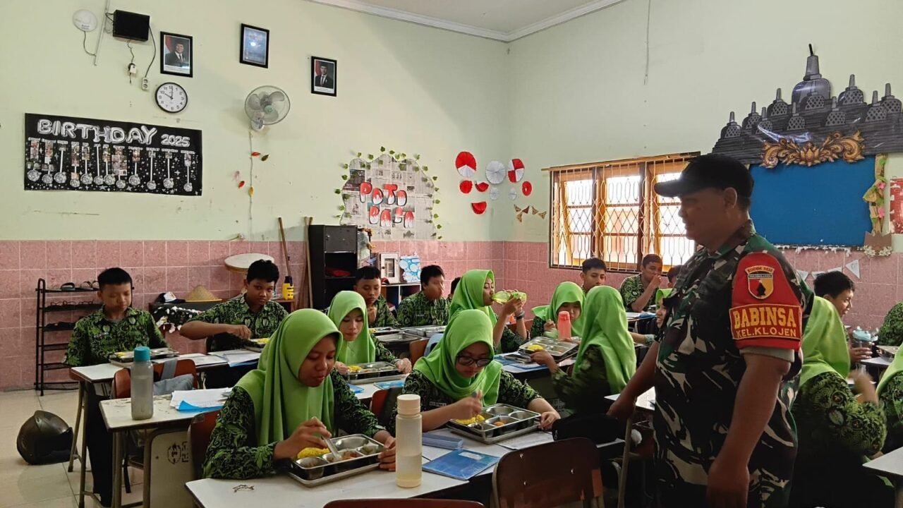 Dukung Kesehatan Pelajar, Babinsa Klojen Kawal Program Makan Bergizi SMPN 3 Malang