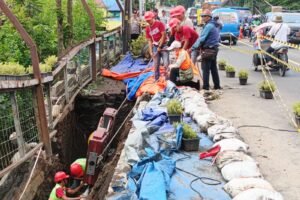 Plengsengan Bawah Trotoar Jembatan Brantas Ambrol Timbun Kampung Tridi