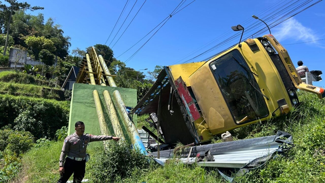 Gagal Taklukkan Tanjakan Jurang Susuh, Truk Muat Galvalum Terjun ke Jurang