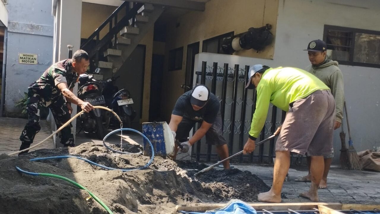 • Babinsa Dinoyo Bersama Warga Kerja Bakti Pasang Paving Demi Kenyamanan Pejalan Kaki